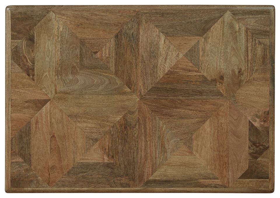 Table basse de salon moderne en bois de manguier massif avec plateau à motif géométrique pliable et durable, style contemporain