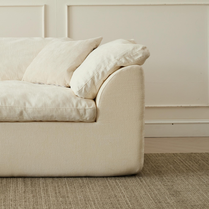 Canapé nuage carré de taille standard en tissu sherpa gris clair de style contemporain, trois places, compressé, avec ottoman