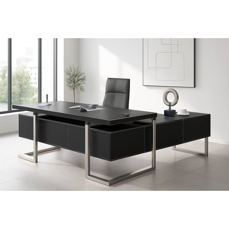 Meuble de bureau de style contemporain, bureau de direction VENICE, design gauche, 2,2x0,85x0,7, bureau de bureau noir