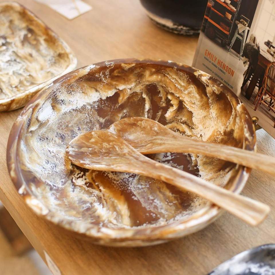 Ensemble de bols et cuillères en résine écologique polie de style contemporain pour servir des collations, rehaussant l'accueil, élégant et moderne