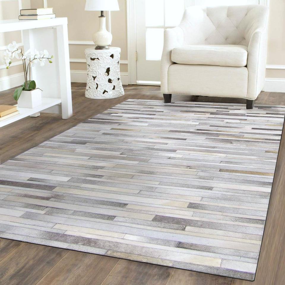 Ensemble de tapis rayés en cuir épais contemporain fait à la main en cuir de vachette vague persane antidérapant lavable pour le salon moderne