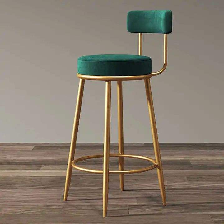 Tabouret de bar en velours contemporain avec pieds en métal doré, chaise de salle à manger de restaurant commercial avec dossier