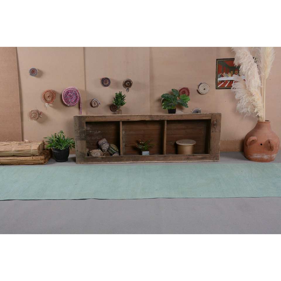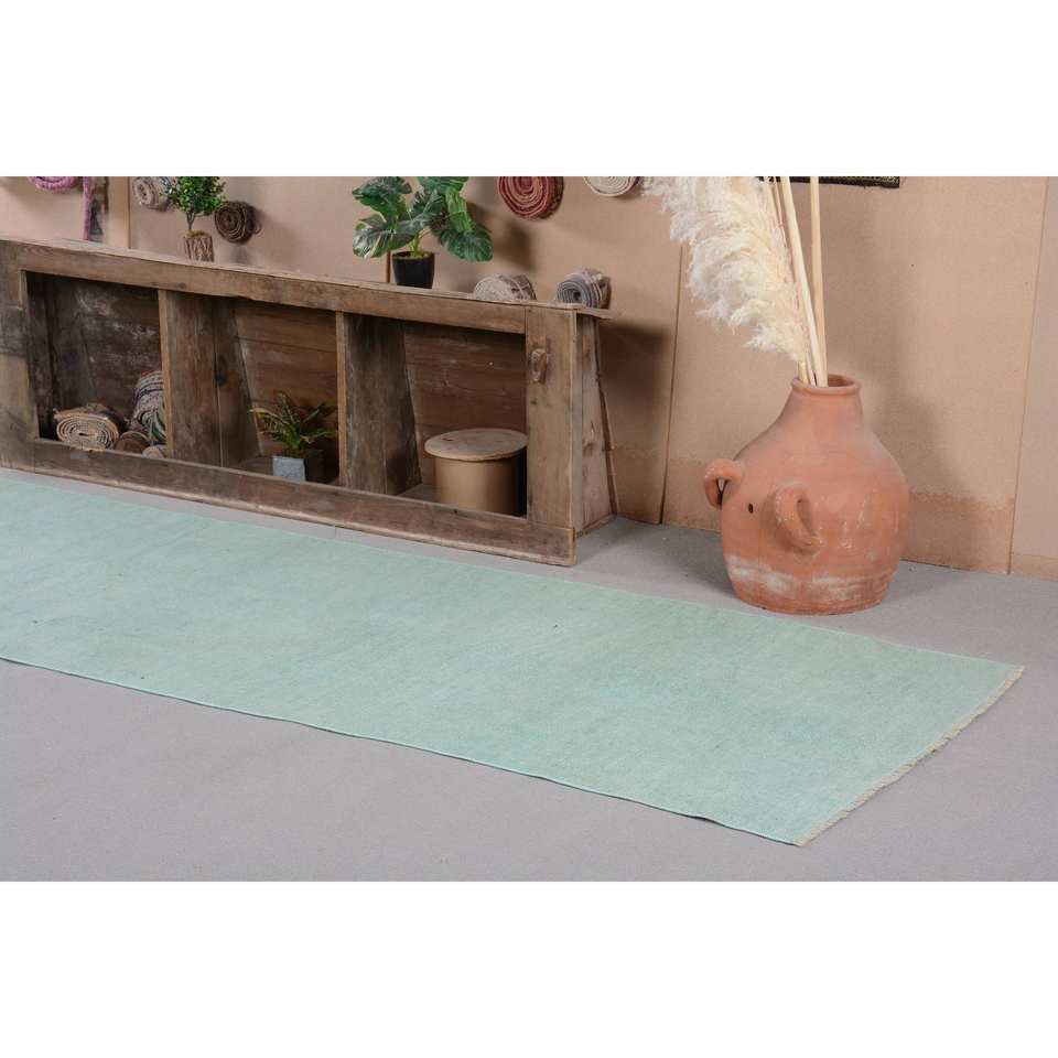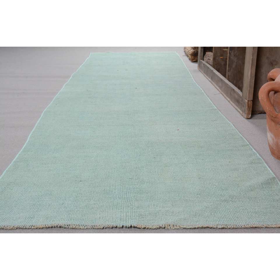 Tapis turc vintage contemporain 3.2 X 13.9ft fait à la main bleu Patchwork Design laine Latex nouveau couloir abstrait Rectangle