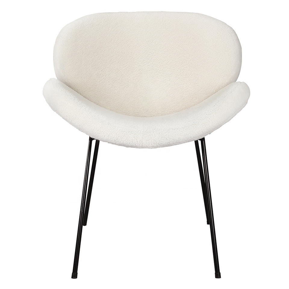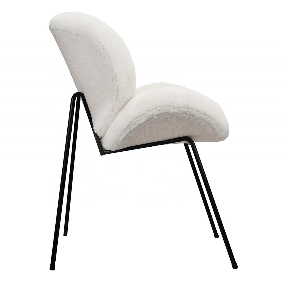 Chaise d'appoint contemporaine blanche chaise de salle à manger en velours rembourrée avec dossier bas incurvé pour cuisine salon dîner