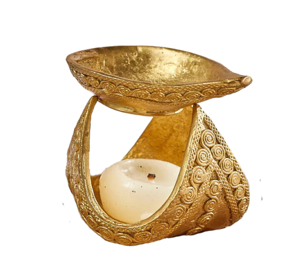 Contemporary brass oil warmer, minimalist essential oil diffuser, sleek home decor, available at wholesale prices.