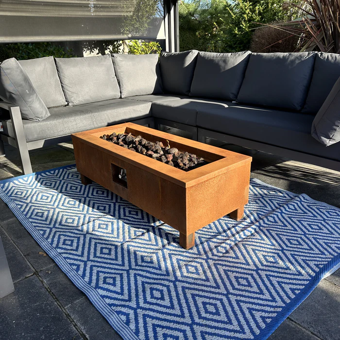 Brasero rectangulaire contemporain au gaz en acier Corten pour la décoration de jardin