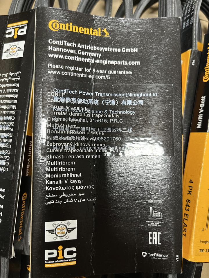 Conti Poly-v-belts Contitech Multirib V Belts 4PK 643 Noir Standard Restaurant Car Haute Qualité Fibre de Verre Pk, ceinture nervurée