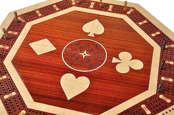 Planche de cribbage en bois continue à 4 pistes avec tiroir poussoir, cribbage en forme d'octogone, stockage disponible pour stocker des cartes et des chevilles (11)