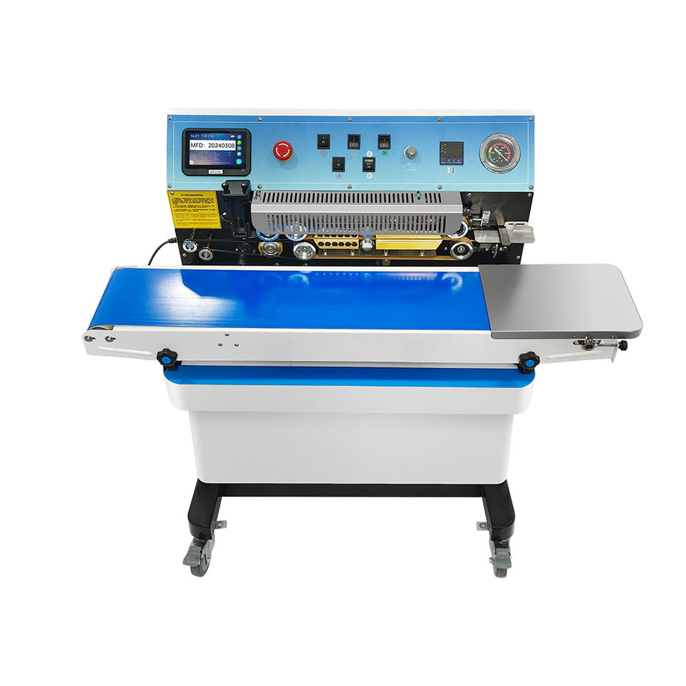Machine de scellage de sacs sous vide et d'inflation avec aspiration d'air continue et purge de gaz, dotée d'un imprimante à code TIJ