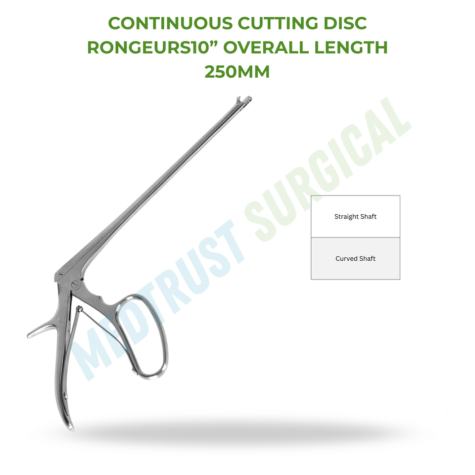 Disque de coupe continu Rongeurs 10 pouces 250 mm Instrument chirurgical à tige droite et courbée