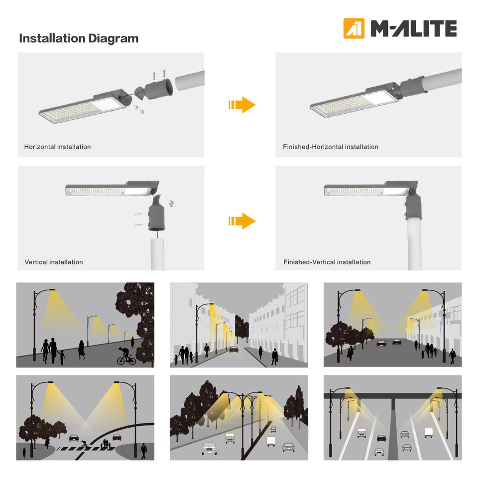 Lampadaire LED extérieur étanche IP67 de qualité professionnelle, réglable, avec niveau intégré 50W-300W pour l'éclairage routier