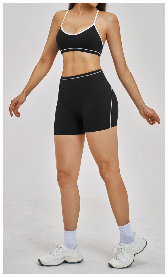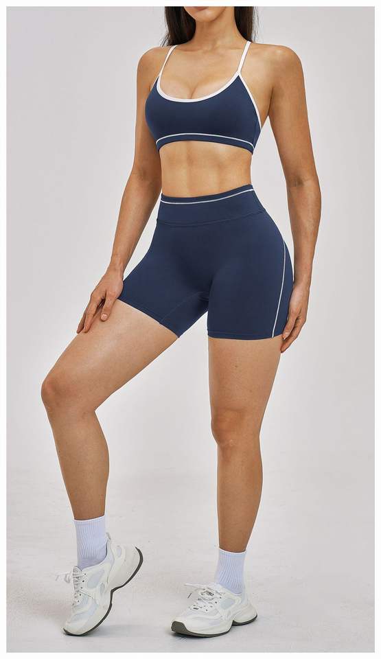 Ensemble de yoga à dos croisé avec bordure contrastante, tenue d'entraînement rehausse-fesses, tissu à séchage rapide, vêtements de sport d'extérieur