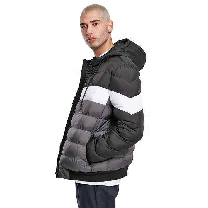 Doudoune matelassée pour homme, haute qualité, à blocs de couleur contrastés, style automne, avec capuche montante, personnalisable, chaude, épaisse, respirante, coupe-vent, pour l'extérieur