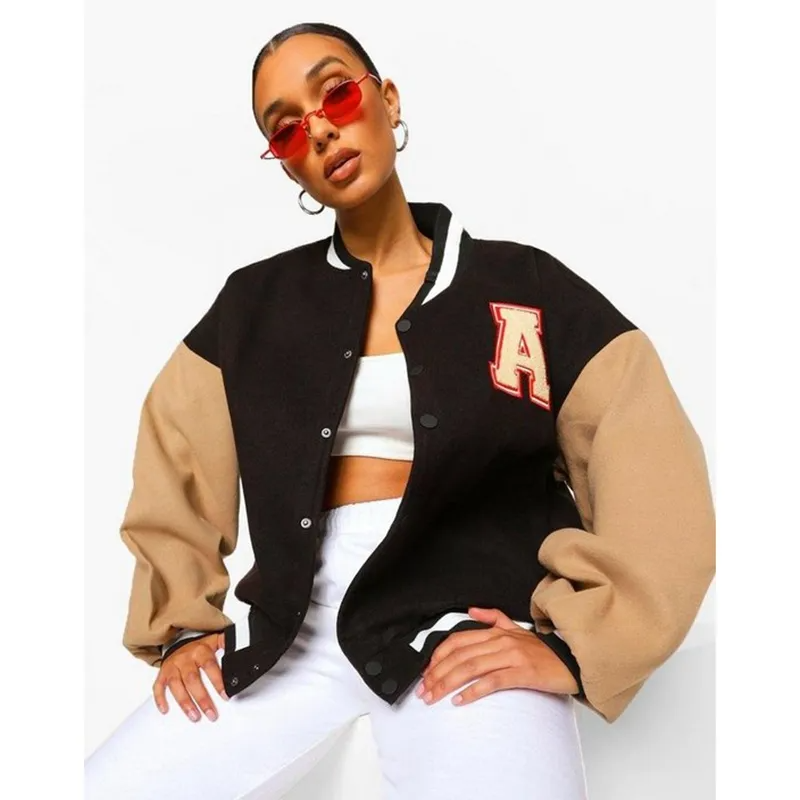 Veste de Baseball en laine recadrée pour femmes manteau universitaire unisexe à boutons complets grande taille polaire respirante Letterman Bomber fini