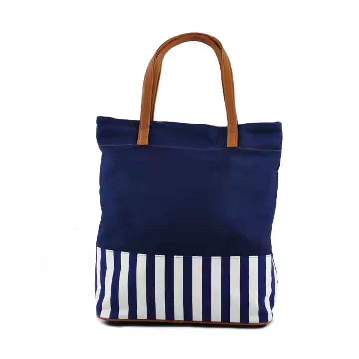 Contrast Color Navy Canvas Zipper Portable Bag