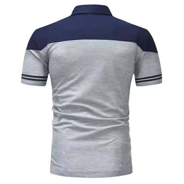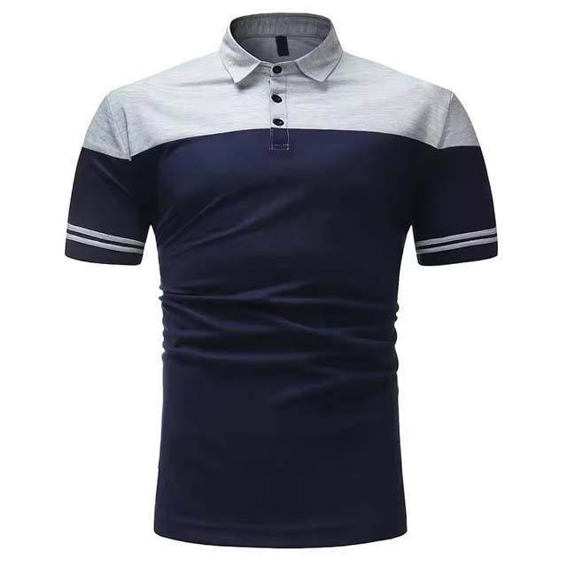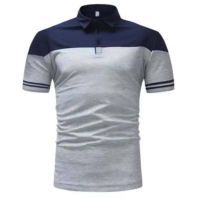 Chemises polo pour hommes en coton et polyester 65/35, couleur gris chiné contrasté et bleu marine, chemises polo d'été pour hommes en vente
