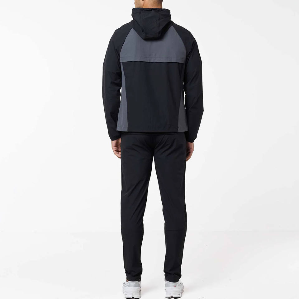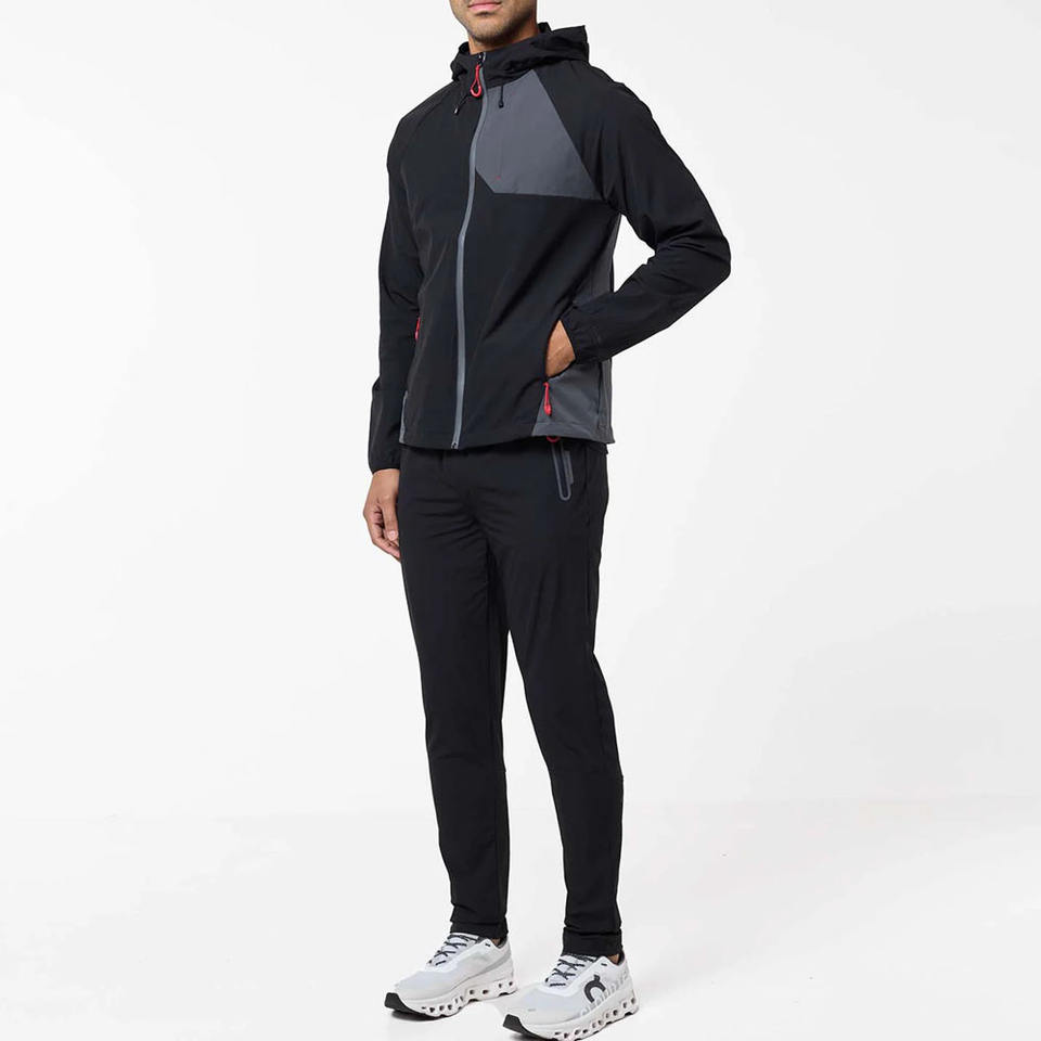 Ensemble de survêtement pour homme en tissu coupe-vent noir pour l'été, veste coupe-vent à fermeture éclair et pantalon de jogging coupe-vent respirant et à séchage rapide