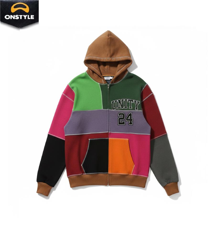 Sweat à capuche d'hiver avec empiècements contrastés | Logo de patch personnalisé en couleur | Pull en polaire | Couture durable, écologique, séchage rapide |