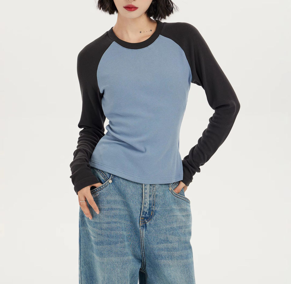 T-shirts raglan à manches contrastées pour femmes Coton Casual Production OEM T-shirts raglan respirants à manches courtes pour femmes