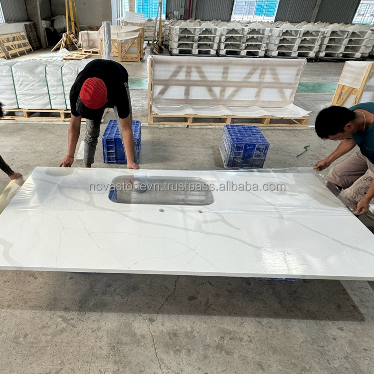 Contrastant Anti-Mycète Sélectif Ingénierie Résidentielle Appartement Calacatta Pierre De Quartz Artificielle Cuisine Comptoir Île