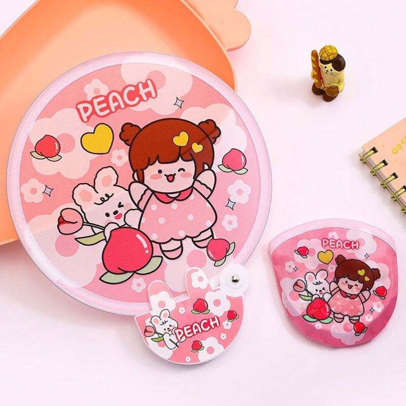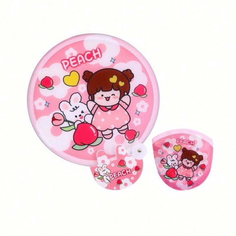 Mini-ventilateur pliable pratique pour étudiant, réfléchissant, portable, en plastique, motif dessin animé, avec revêtement en tissu, pour l'extérieur