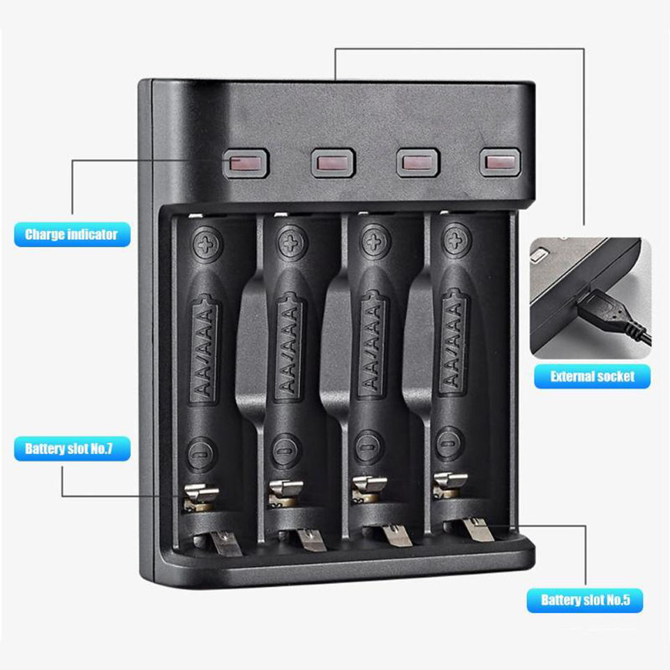 Chargeur de batterie intelligent, pratique, pour accumulateurs Ni-MH ni-cd AA, AAA, rechargeables, entrée USB, AAA,