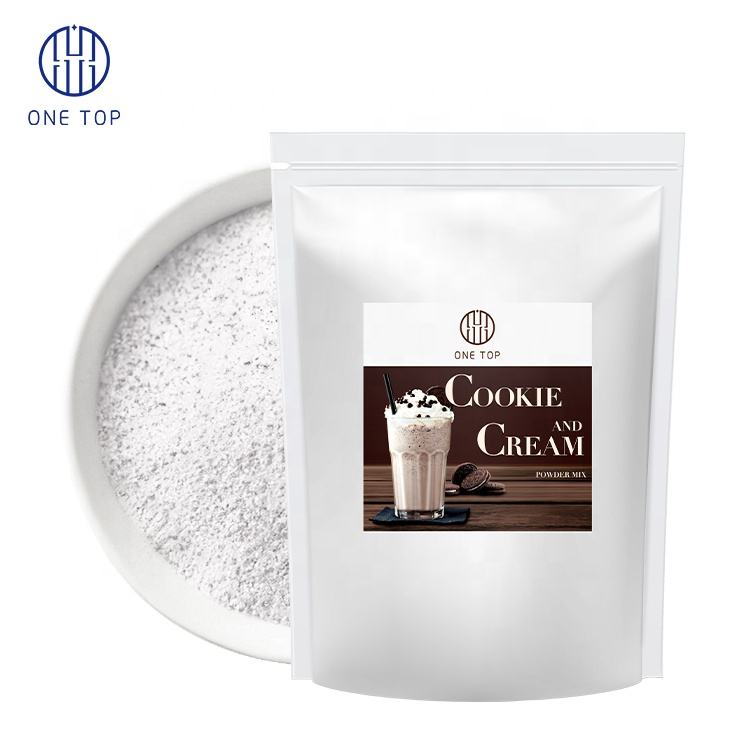 Mélange en poudre pour Bubble Tea saveur Cookie et Crème, marque ONE TOP, 1 kg, conditionnement pratique, durée de conservation de 2 ans, fabriqué à Taïwan, en sachet.