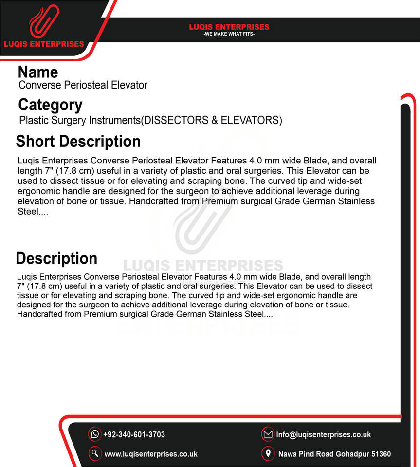 Élévateur périosteux Converse, instrument chirurgical ORL, acier inoxydable de qualité médicale, outil de précision pour la dissection osseuse