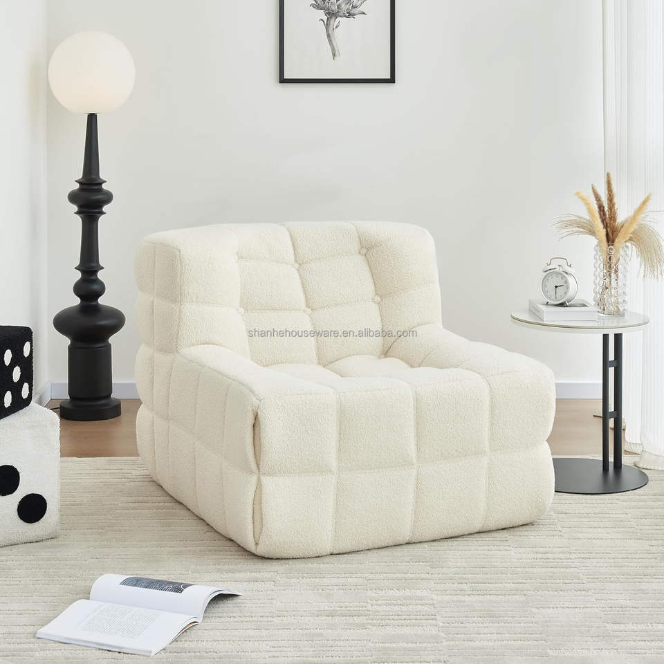 Fauteuil convertible sans accoudoirs confortable carré Sherpa tissu au sol canapé de salon canapé d'appoint simple pour le salon