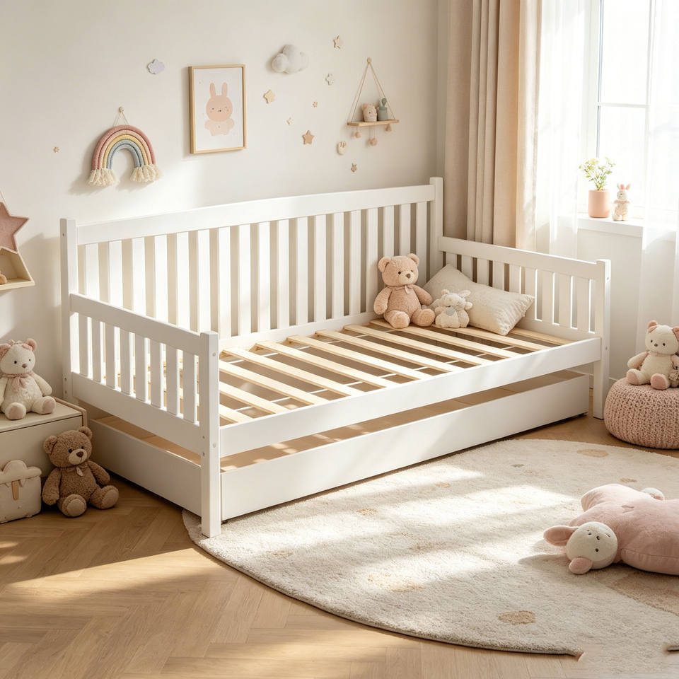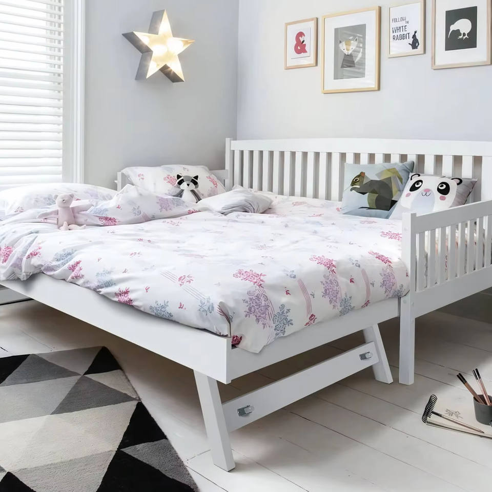 Lit convertible en bois massif extensible pour enfants, lit 2-en-1 canapé-lit et lit plateforme pour chambre d'enfant