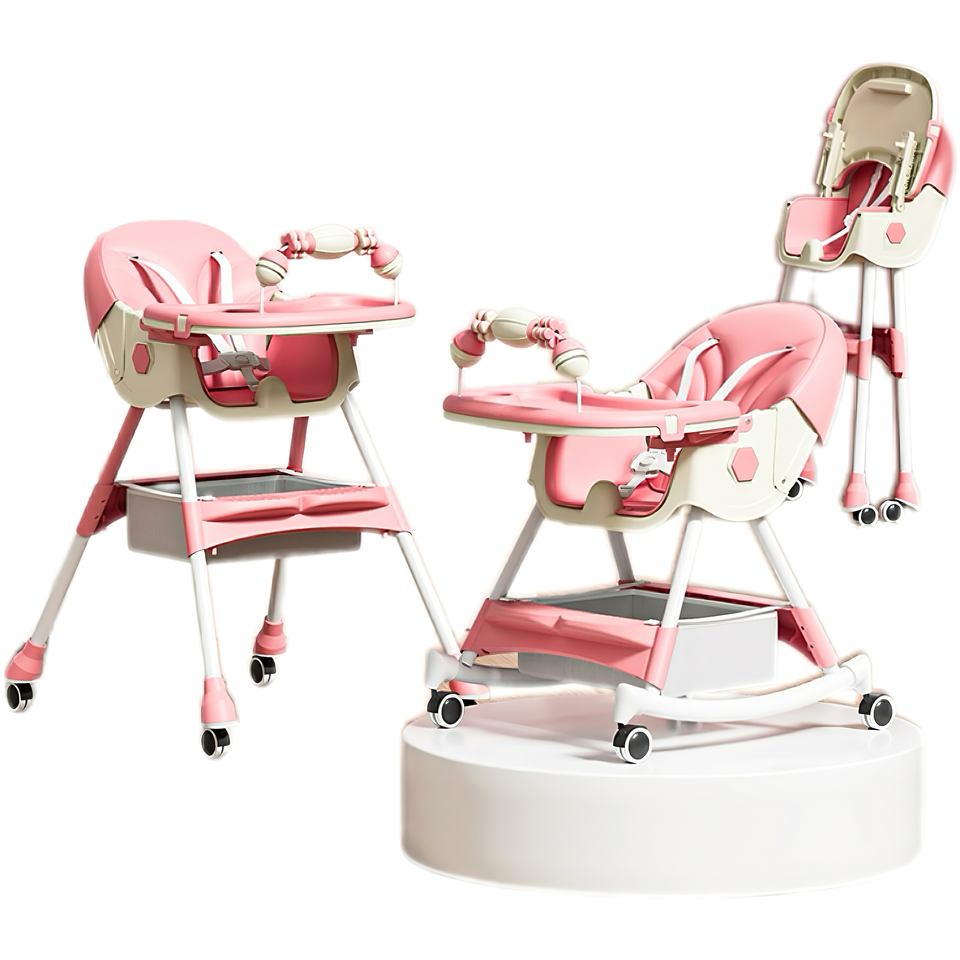 Chaise haute convertible pour bébés et tout-petits Chaise haute pour bébé avec siège rehausseur à double plateau de sécurité et harnais de sécurité à 5 points