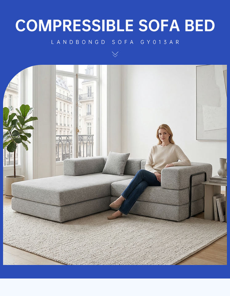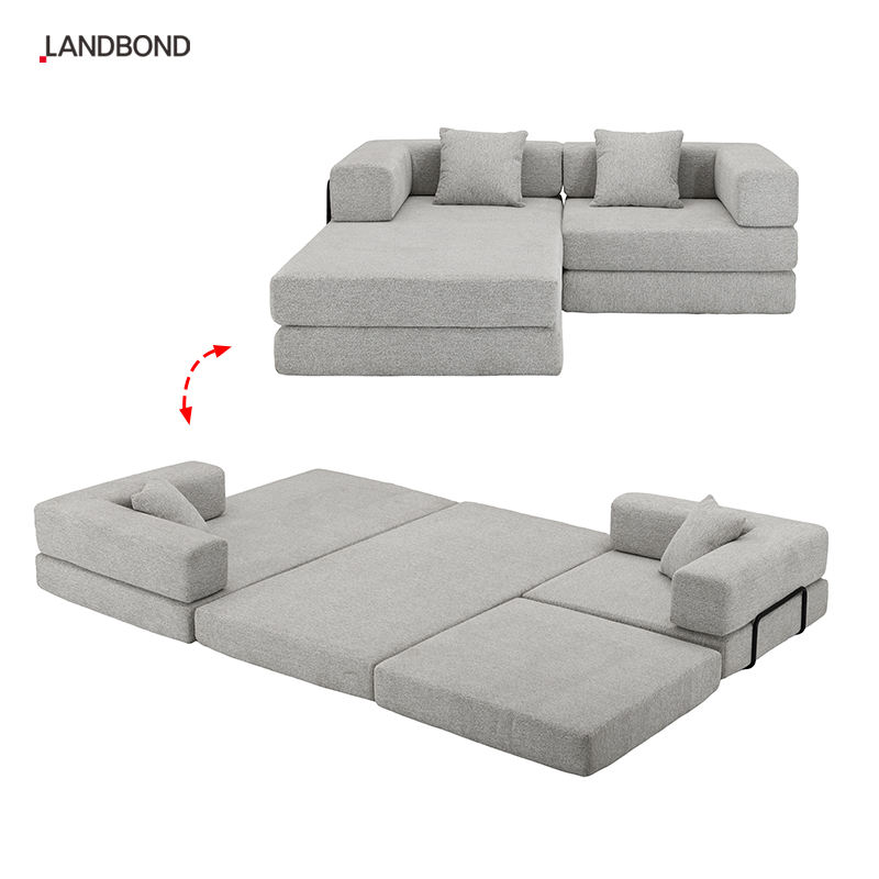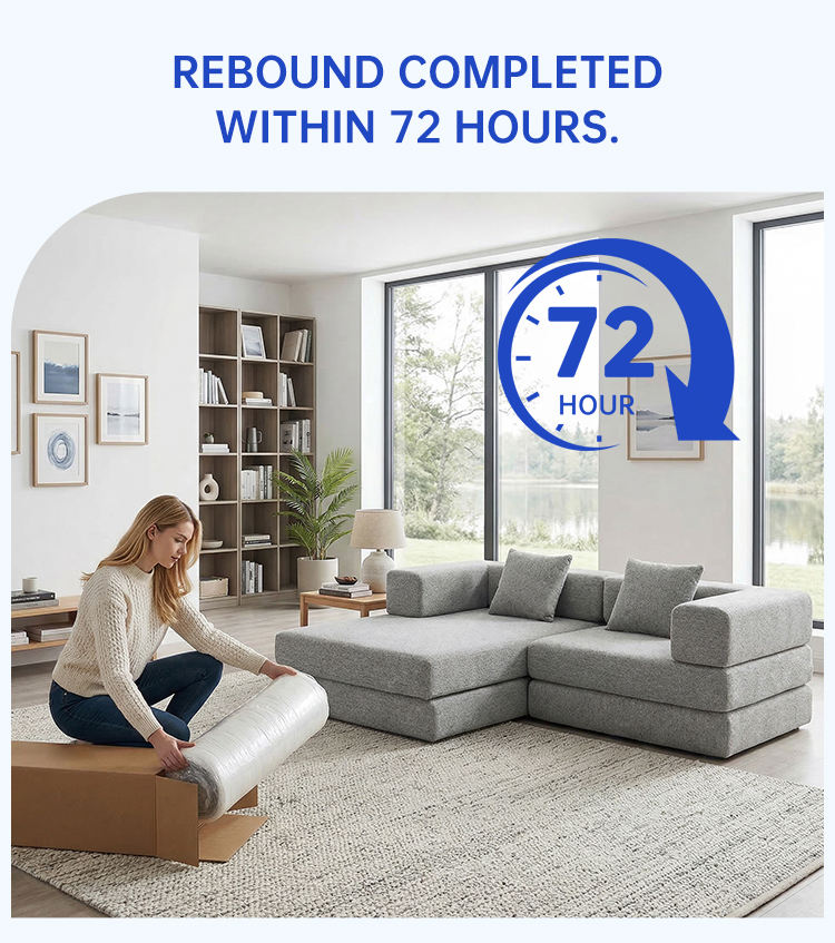Canapé convertible modulaire 3 places en forme de L, sans cadre, compressé sous vide en boîte