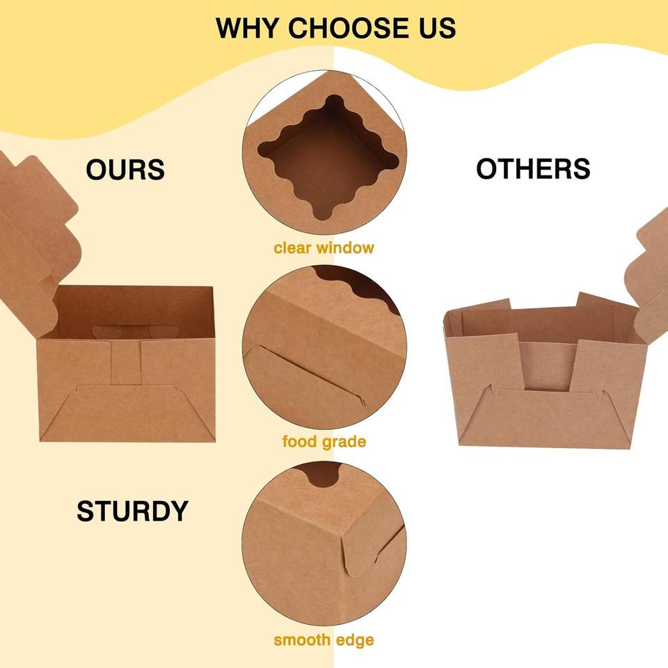 Boîtes à biscuits avec fenêtre, 4x4x2,5 pouces, boîtes de boulangerie brunes, contenants à pâtisserie pour petits biscuits, friandises et desserts