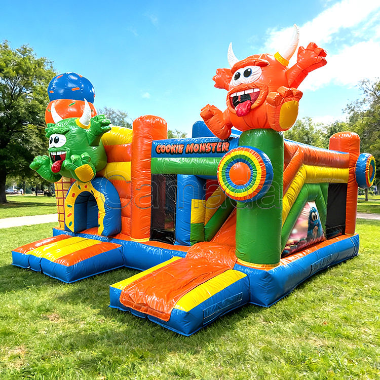 Château gonflable et toboggan Cookie Monster pour enfants, château gonflable personnalisé, structure gonflable pour enfants, aire de jeux extérieure