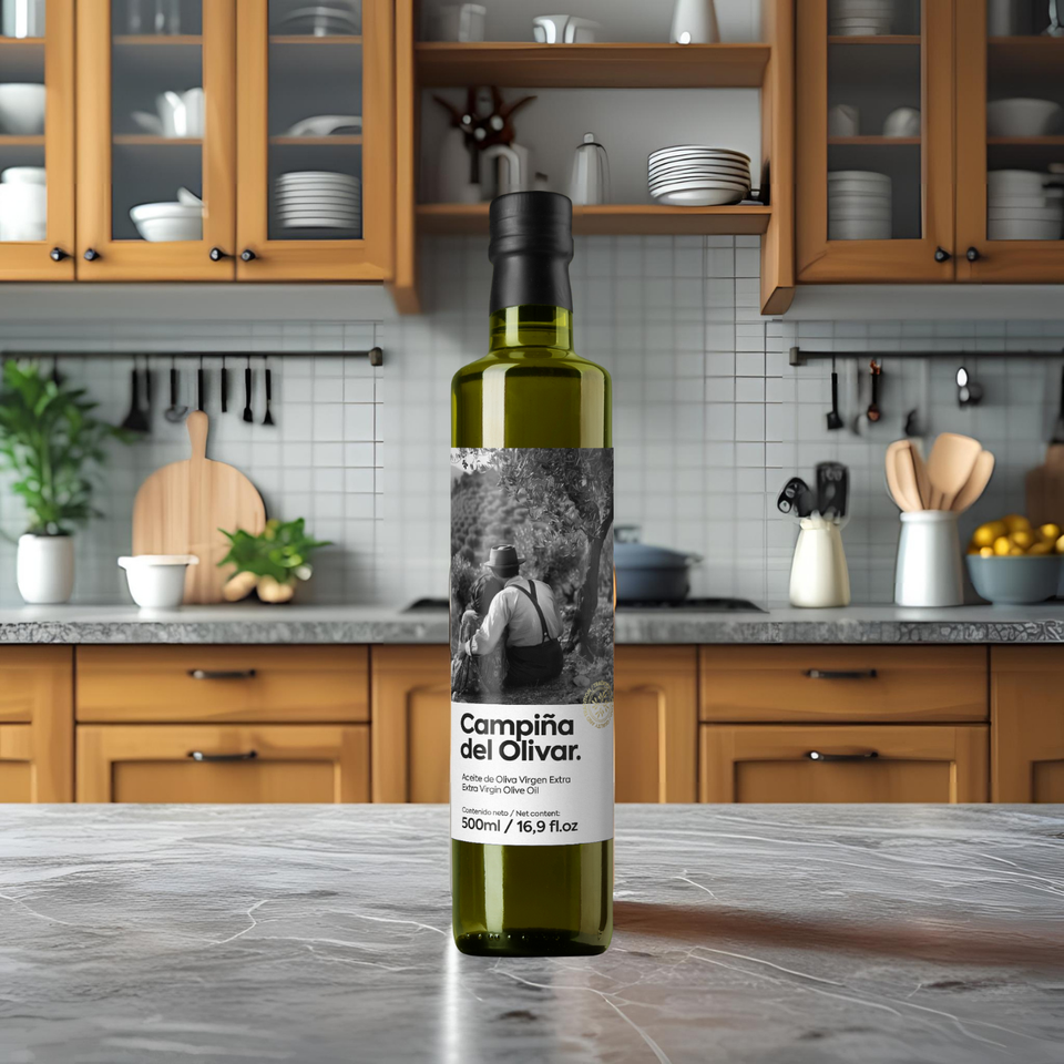 Bouteille en verre "Campiña Del Olivar" pour la cuisson et la friture de 750ml d'huile d'olive pour un usage quotidien