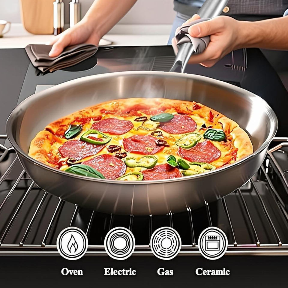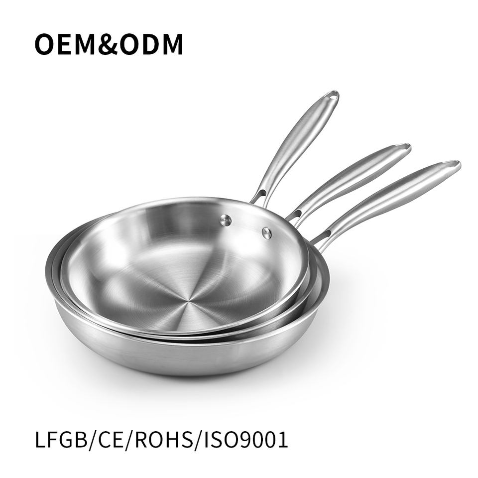 Ensemble de poêles 8, 10 et 12 pouces en acier inoxydable 304 triple couche, antiadhésif, durable, résistant à la chaleur, compatible gaz et induction