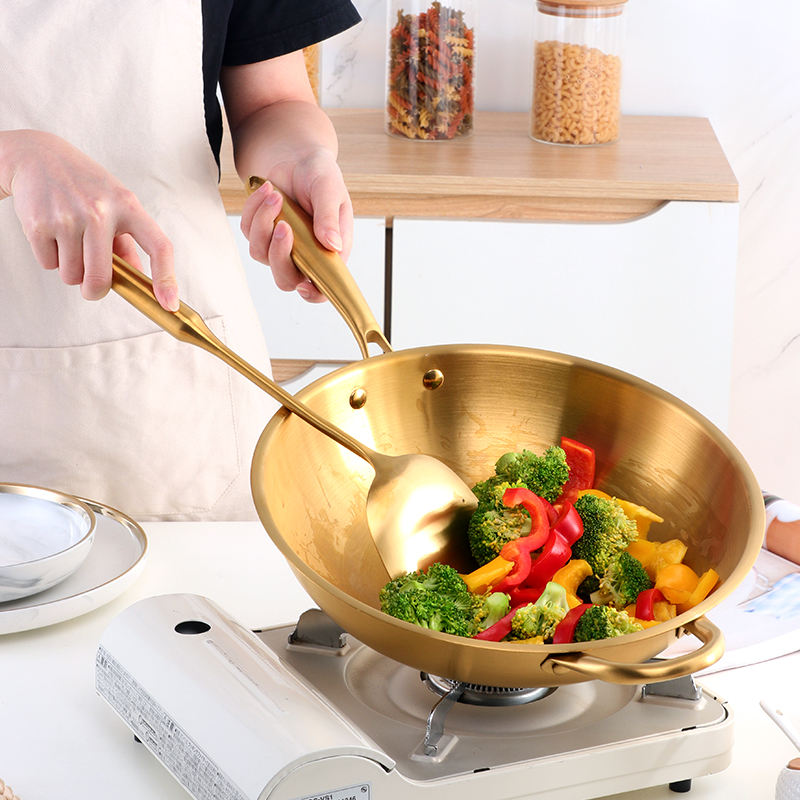 Ustensiles de cuisine Poêle à frire en acier inoxydable avec couvercle Poêles en métal Wok de cuisson pour la maison hôtel restaurant