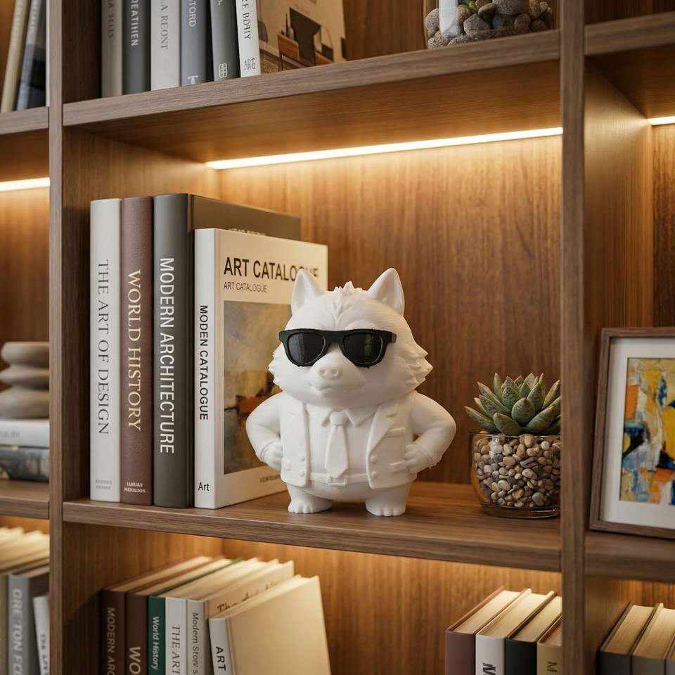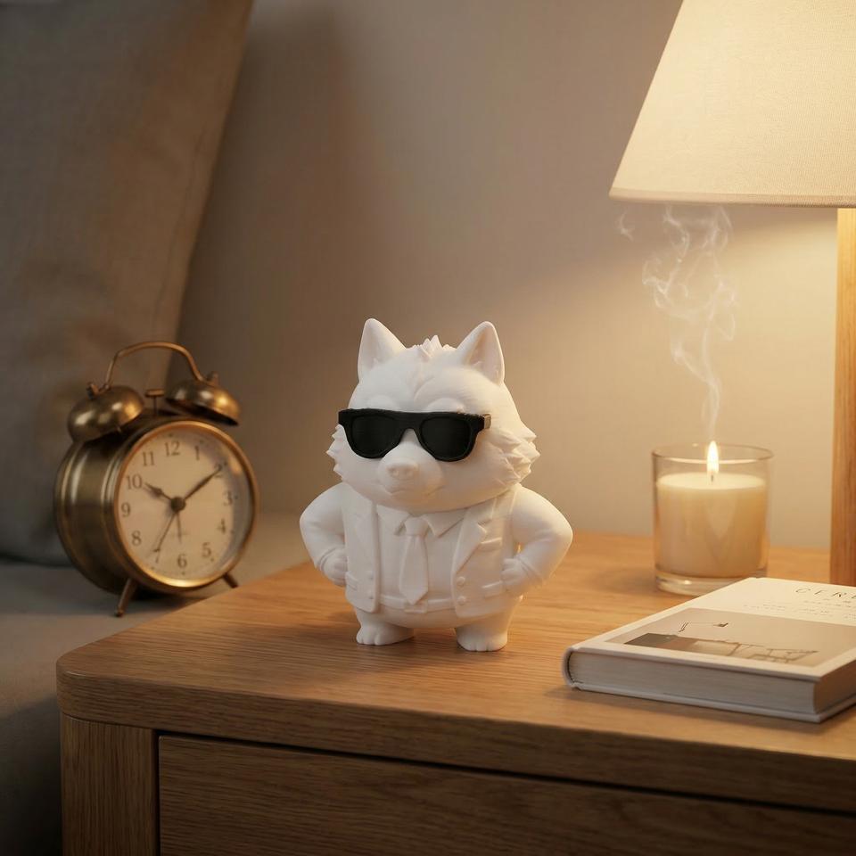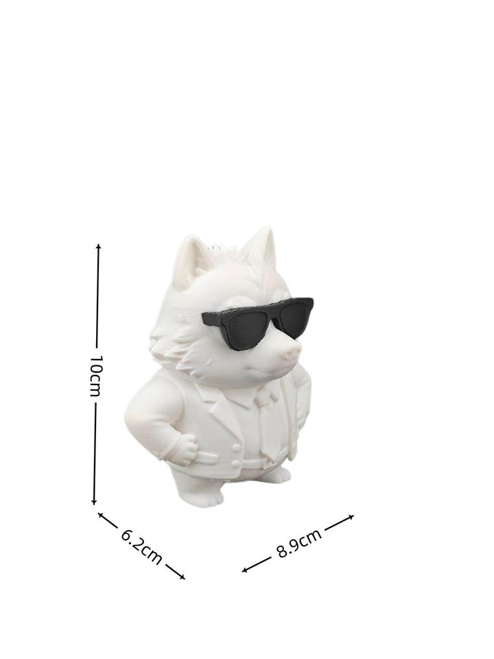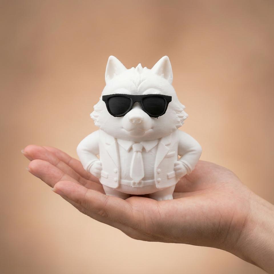 Statue de loup "Cool Boss" imprimée en 3D, finition mate