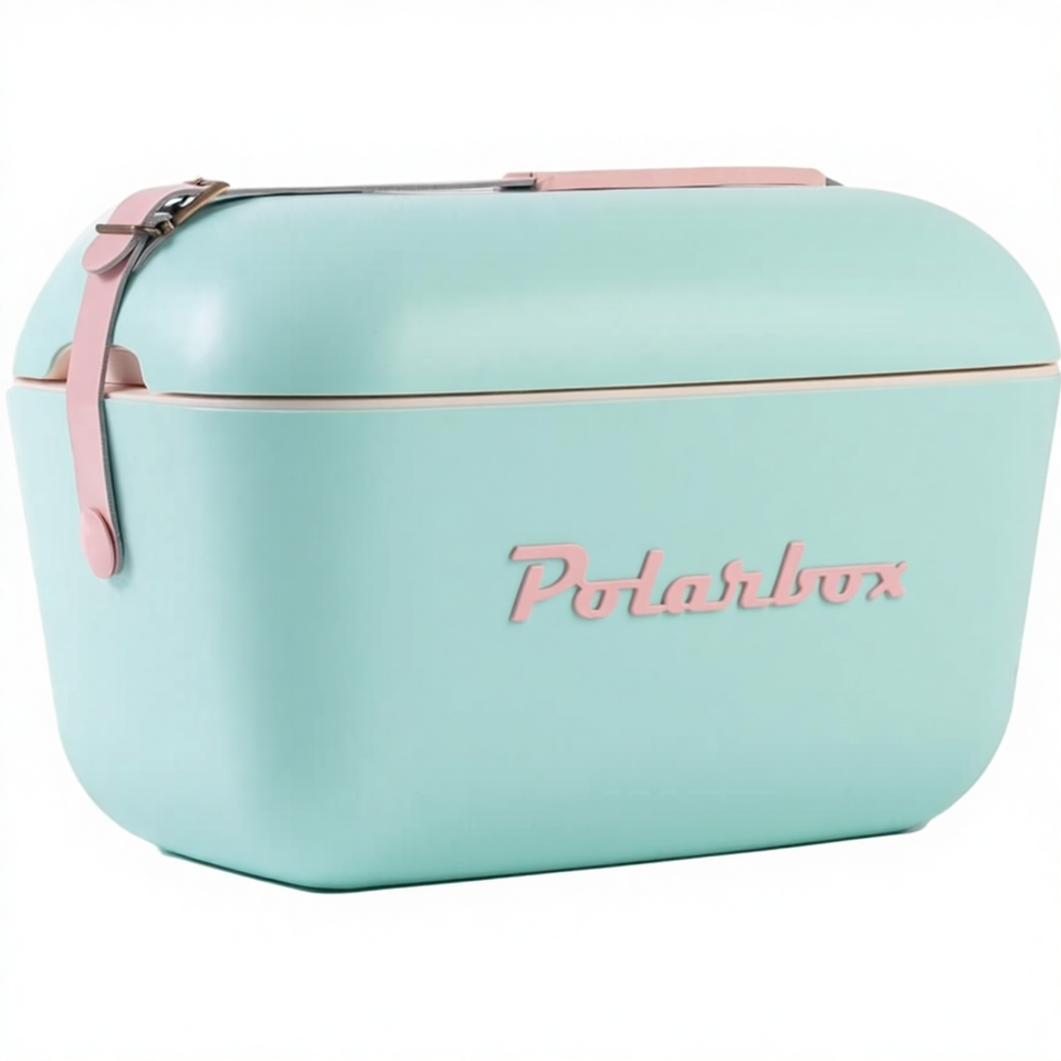 Glacière 20L Verte Pop Plastique Portable - Logo Rose et Sangle - POLARBOX