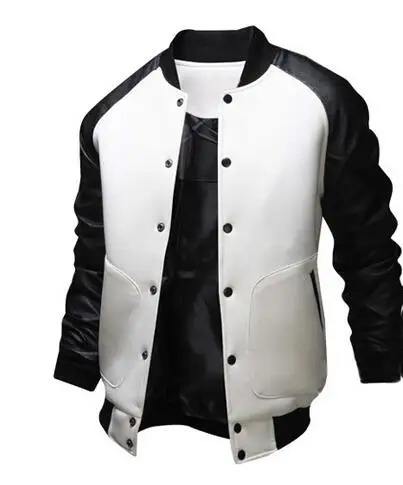 Cool College Baseball Varsity Veste Hommes 2017 Design De Mode Noir En Cuir Véritable Toile Slim Fit High Street Marque Veste Homme