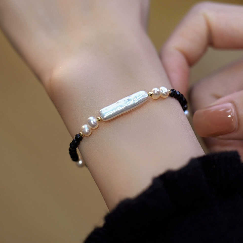 ZL9-10 Natural freshwater pearl/black spinelcolor