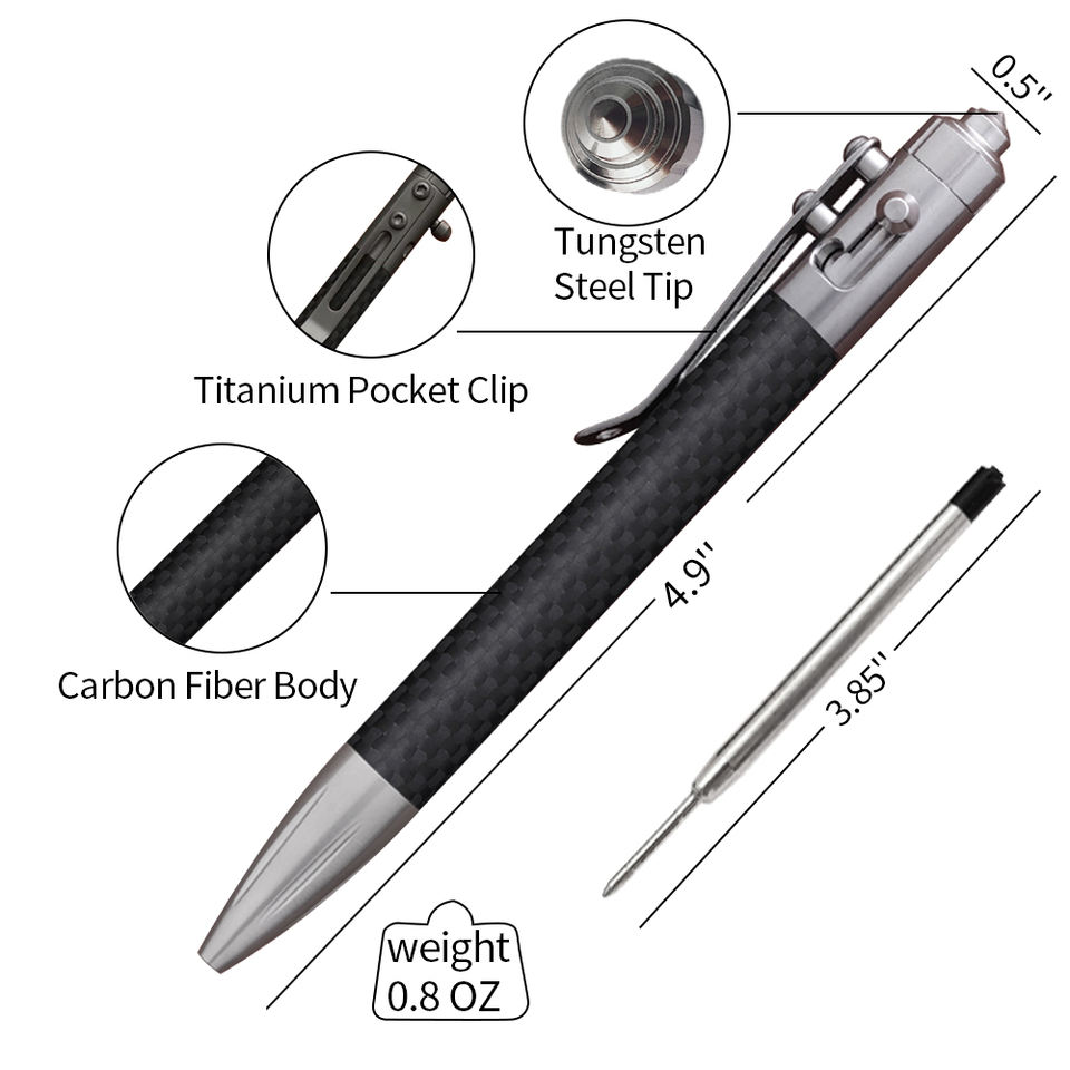 Stylo bille EDC personnalisé en fibre de carbone, portable, pour signature professionnelle, idéal pour l'escalade, le camping et la randonnée en extérieur