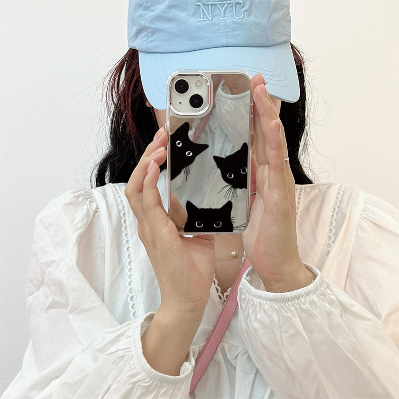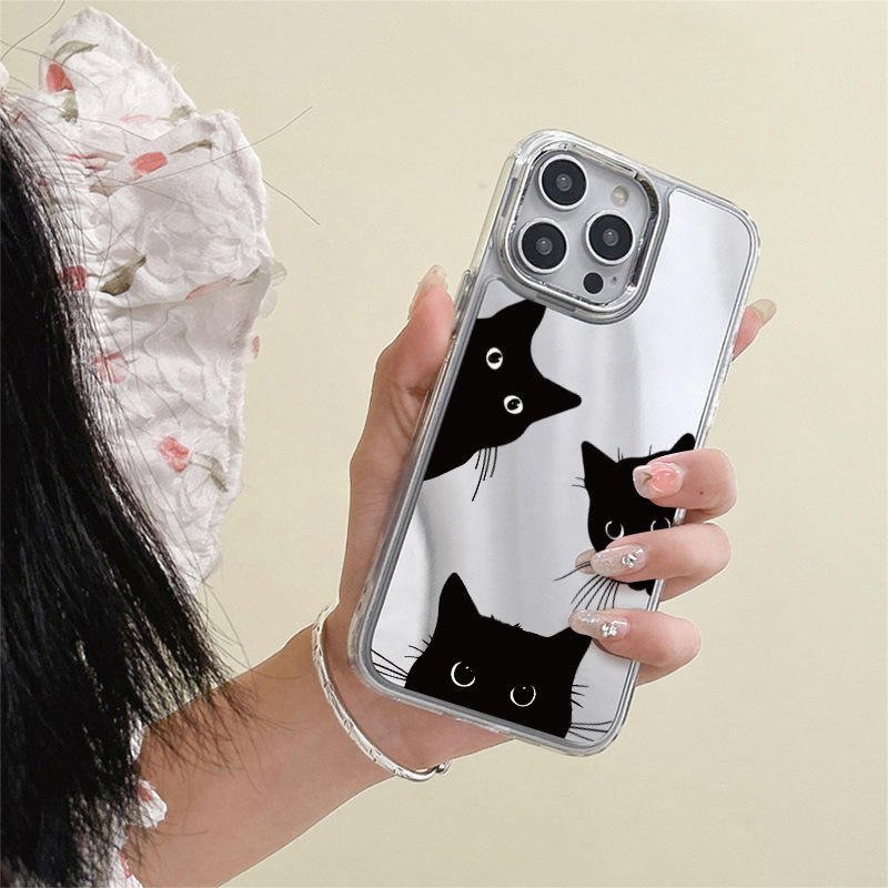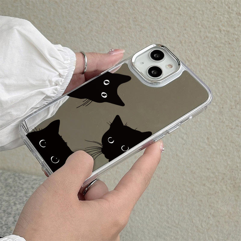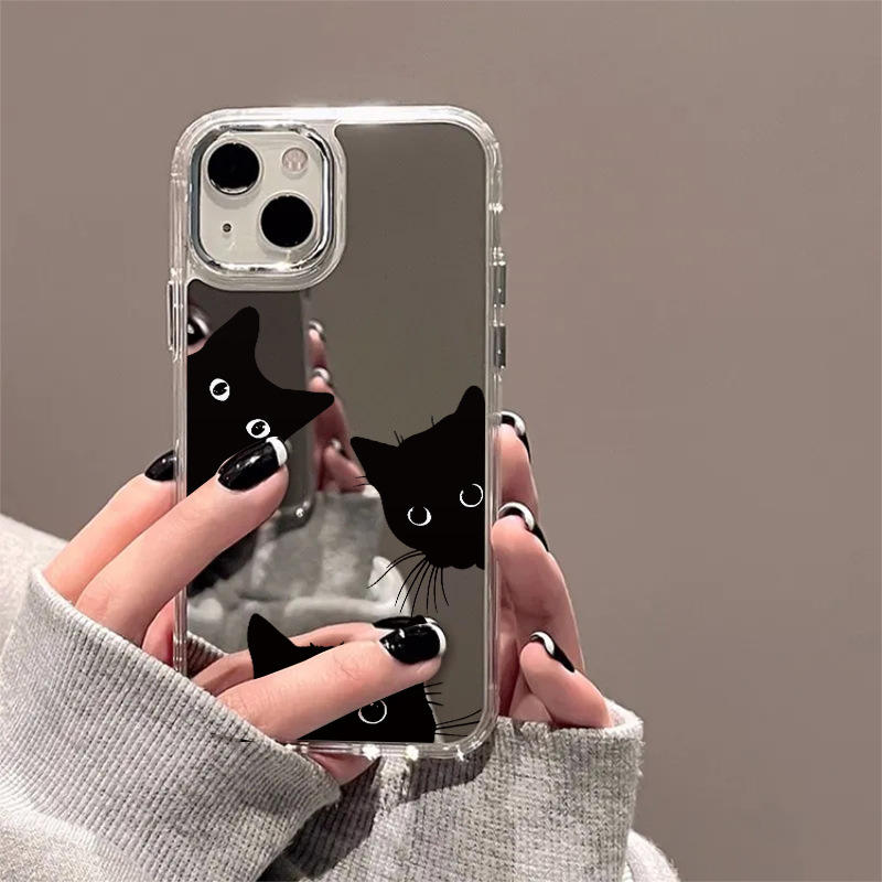 Coque de téléphone Cool Little Black Cat pour IPhone 16Promax Mirror New Simple Mirrors Cover