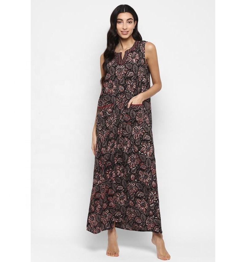 Smart Hot Summer Gris Marron Fleur Motif Main Bloc Imprimé Sans Manches Nuisette avec Poche Détail Belle Robe De Nuit