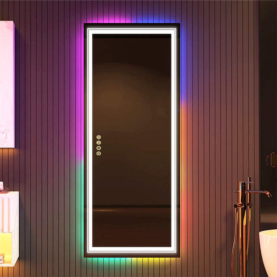 Grand miroir mural de Dressing pleine longueur avec couleur de lumière courante rvb pour vestiaire/Dressing/chambre à coucher/salle de bain