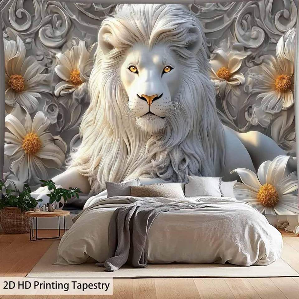 Cool White Lion King Aesthetic Animal Tapestries for College Hippie Art Home Decor Wall Blanket for Ramadan Wedding