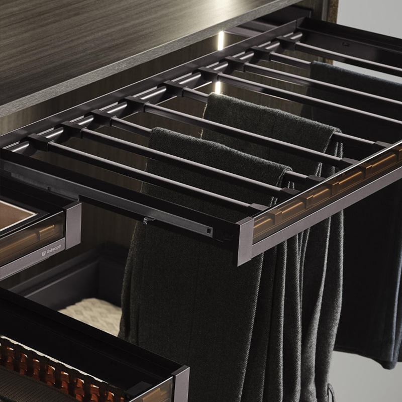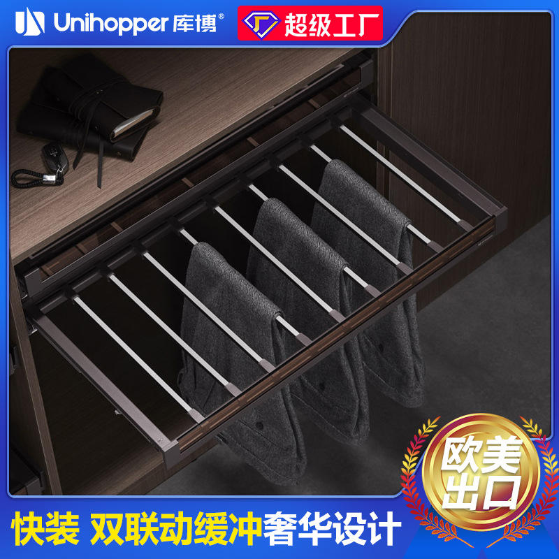 Porte-pantalon minimaliste Cooper Glass Latte avec tiroir télescopique antidérapant pour vêtements et chapeaux