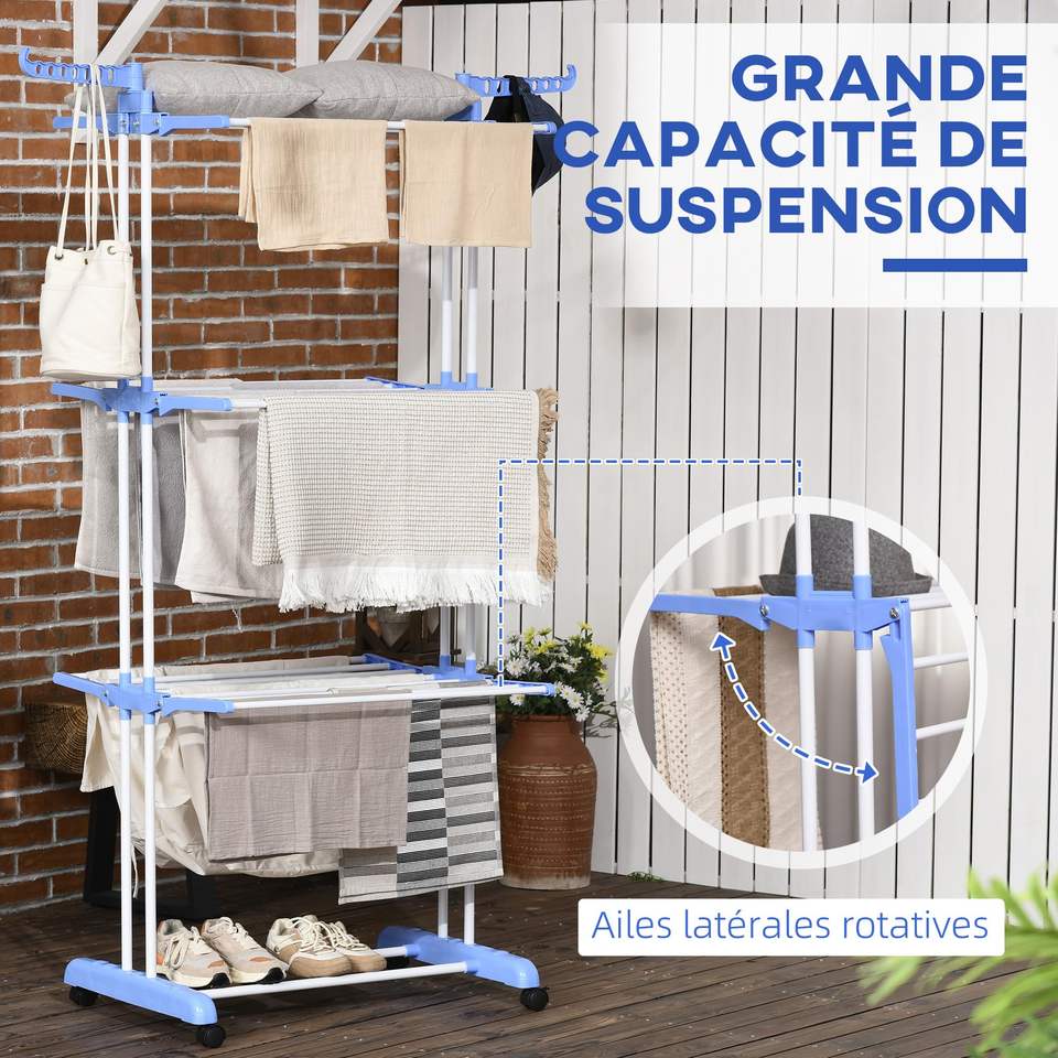 Séchoir à linge pliable extra large à 3 niveaux pour intérieur/extérieur, support de séchage pour vêtements