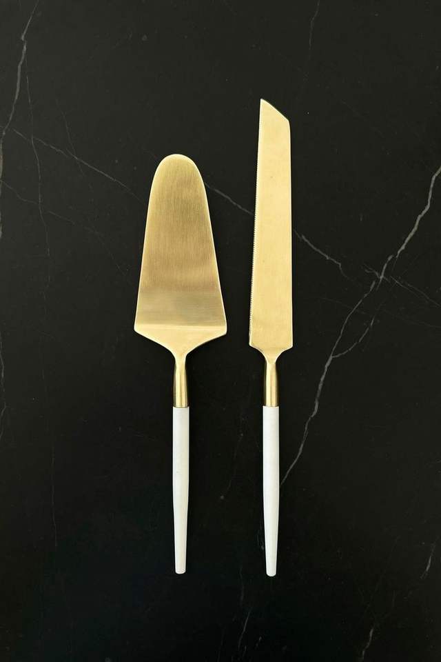 Ensemble de serveurs de gâteau de mariage coordonné avec des accents décoratifs élégants, couverts pour la présentation, argenterie de mariage pour mariage