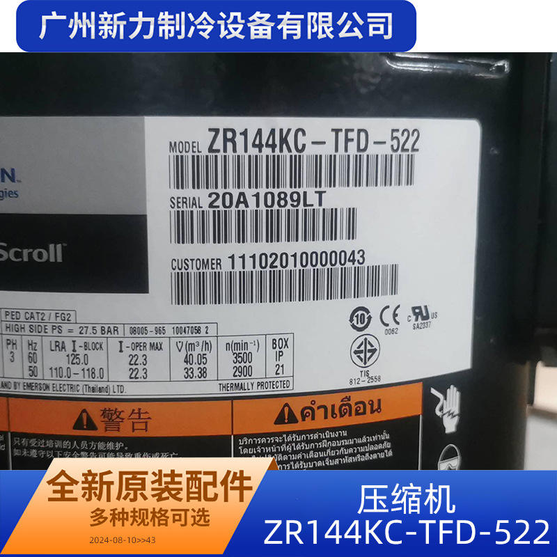 Compresseur à spirale Copeland ZR144KC-TFD-522 pour la réfrigération et le remplacement des systèmes de climatisation centralisée